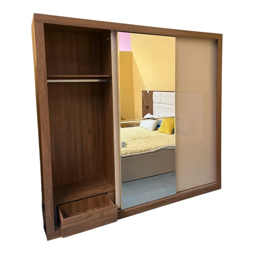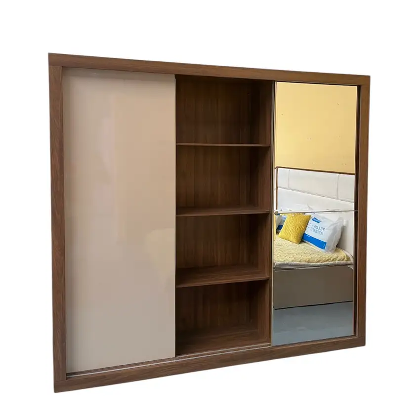 Guarda-roupa moderno com portas de correr, espelho e amplo espaço interno.
