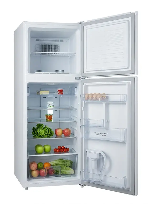 Geleira duplex compacta da Konka, com congelador superior e ótimo desempenho para uso diário.