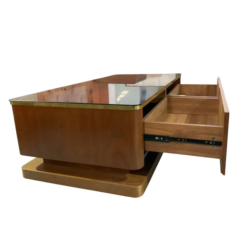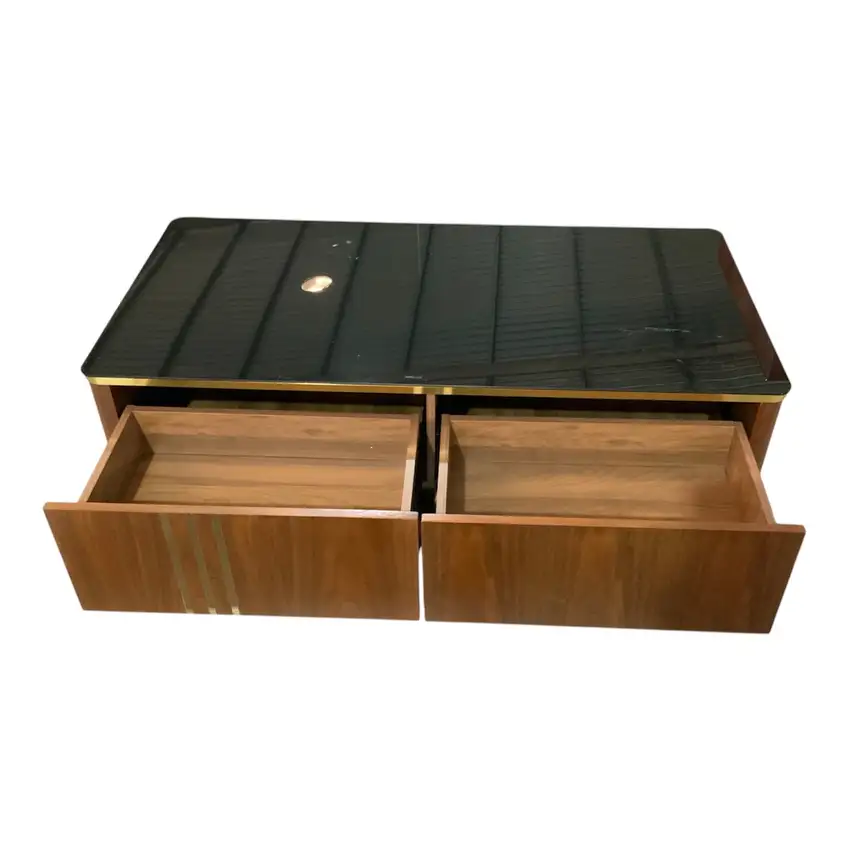 Mesa de Centro Luxo Madeira Premium com Tampo em Vidro Preto