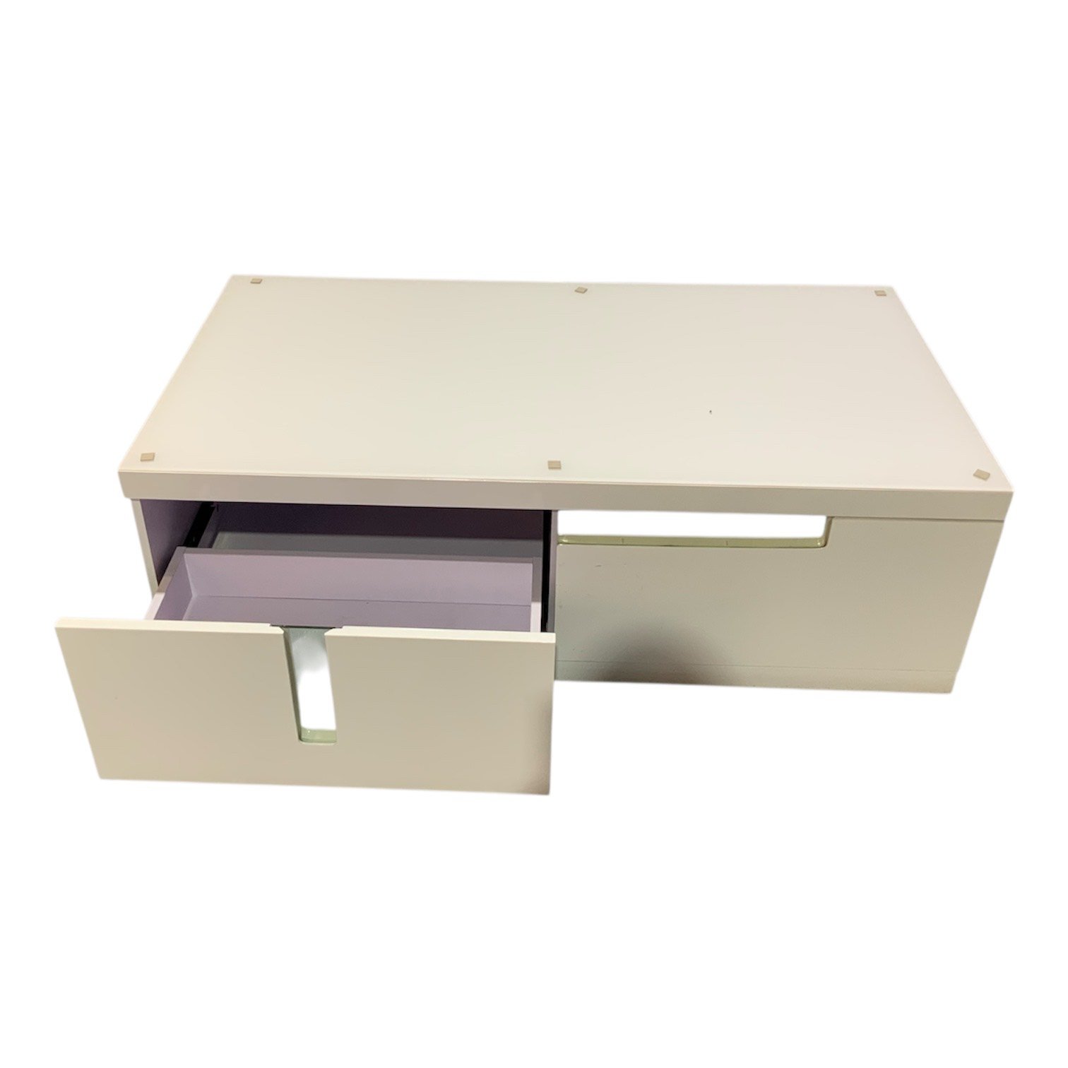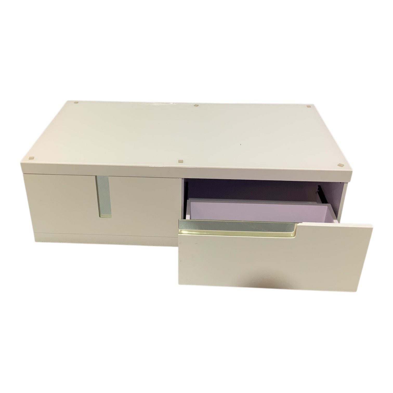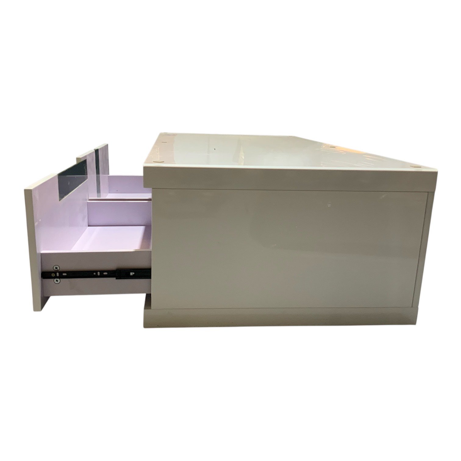 Mesa de centro moderna com design minimalista e compartimentos funcionais para organização prática.