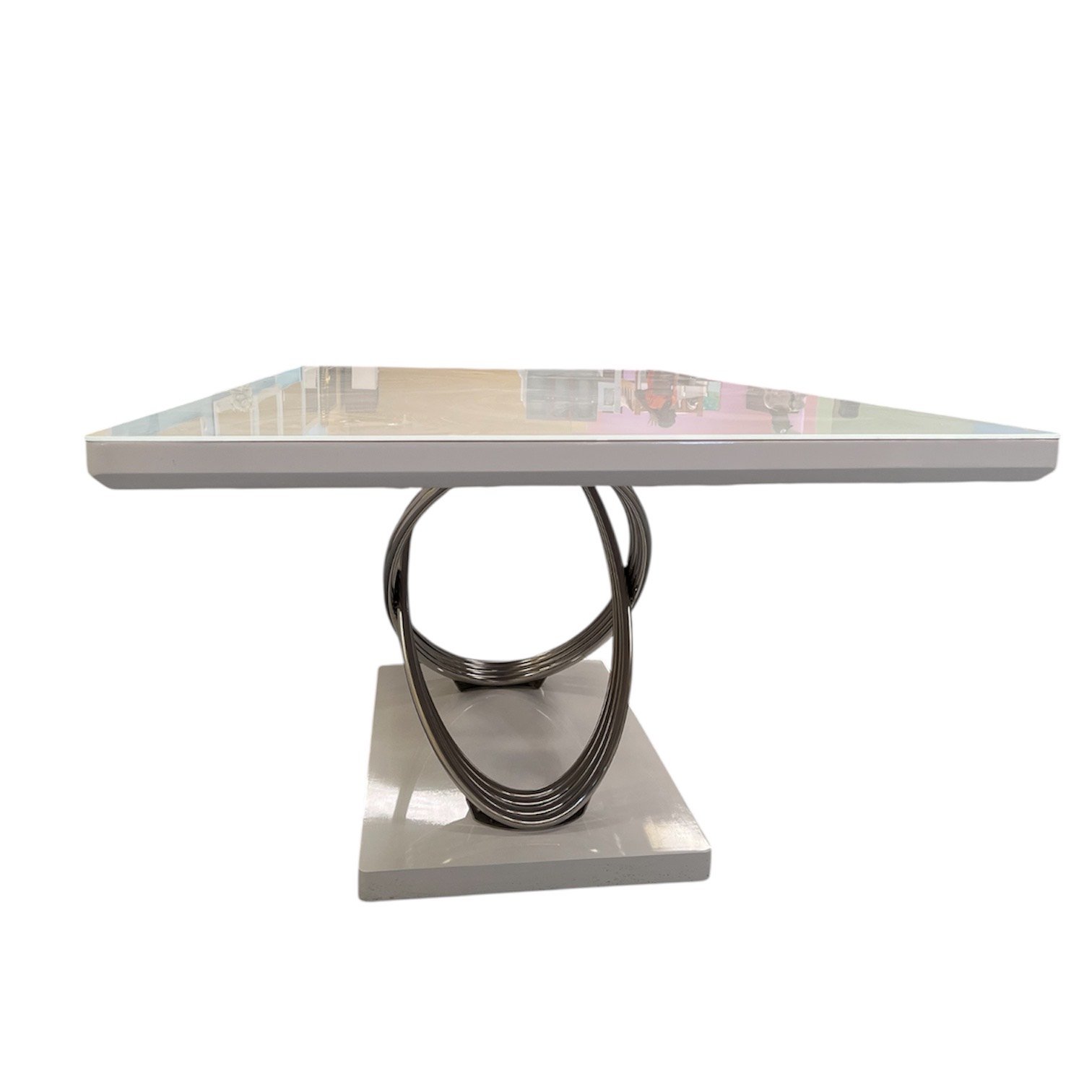 A Mesa de Jantar Elegance Crystal é a definição de sofisticação e modernidade. Com um tampo em acabamento branco brilhante, esta peça destaca-se pela sua estética limpa e elegante, perfeita para ambientes contemporâneos.