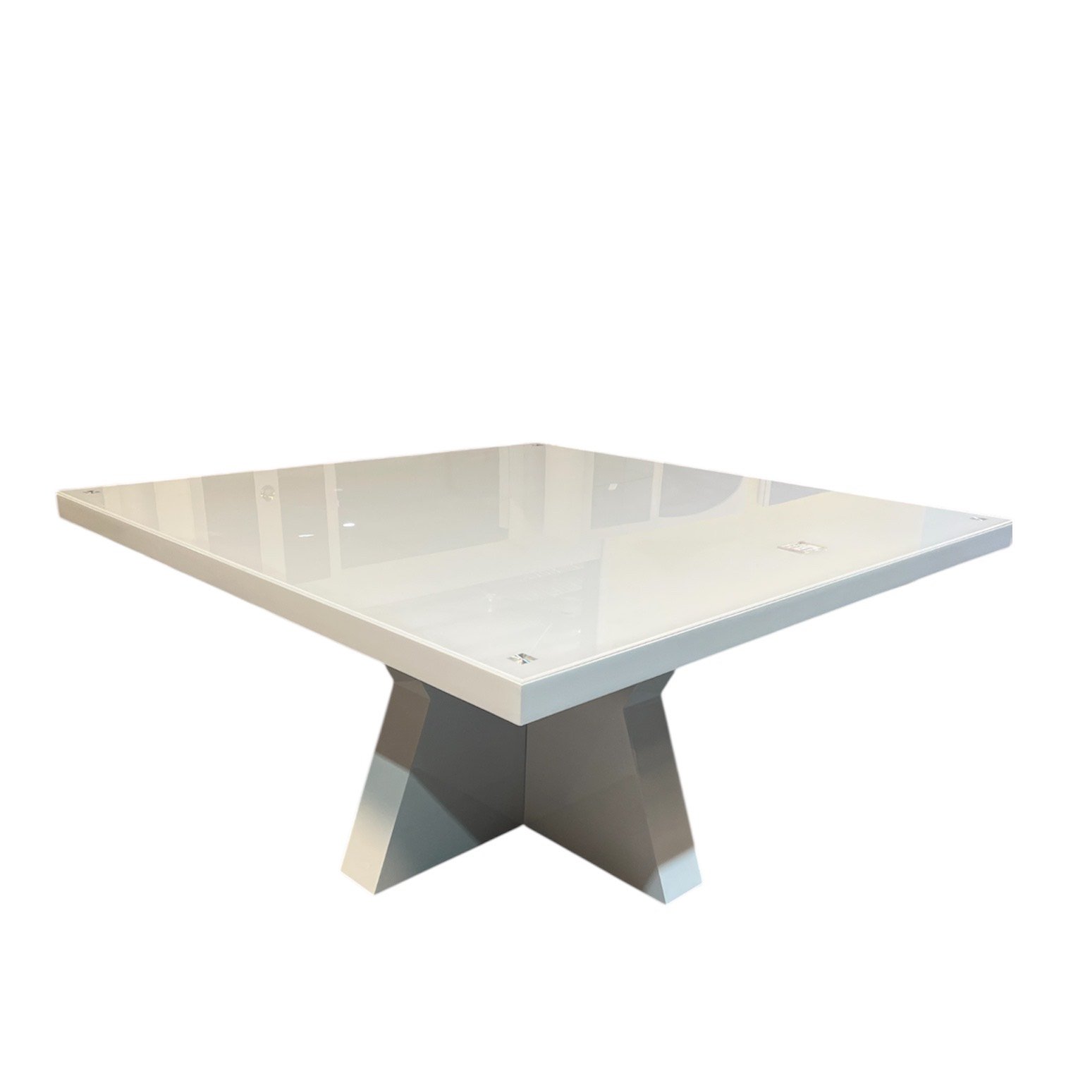 Mesa de jantar quadrada com tampo branco é uma peça única e criativa, perfeita para quem deseja sair do comum e adicionar personalidade ao ambiente. Seu tampo apresenta uma estampa artística inspirada em cenários de inverno, trazendo um visual moderno, ousado e exclusivo.