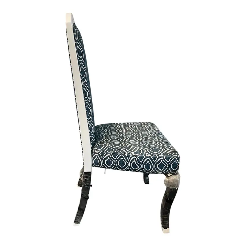 A Cadeira Elegance Pattern Blue é a escolha ideal para quem deseja adicionar personalidade e sofisticação ao ambiente. Com estofamento em tecido de padrão geométrico elegante em tons de azul escuro e branco, esta peça destaca-se pelo seu design diferenciado e moderno. O encosto alto proporciona excelente suporte para as costas, enquanto o assento acolchoado garante conforto no uso diário. A estrutura em madeira com acabamento claro cria um contraste harmonioso, tornando-a perfeita para salas de jantar, espaços decorativos ou ambientes contemporâneos.