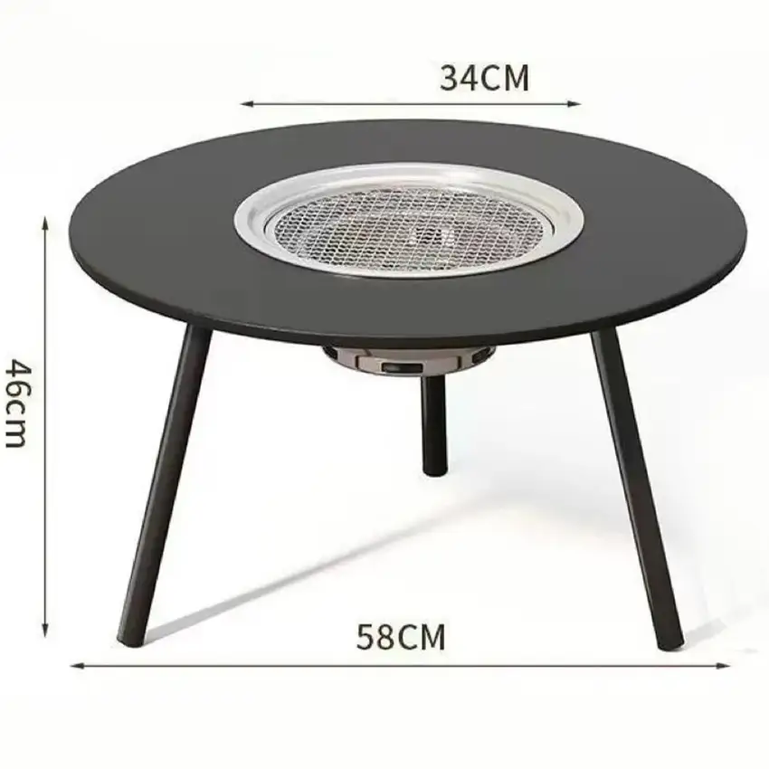 Mesa com lareira integrada combina design moderno com funcionalidade, sendo perfeita para criar um ambiente acolhedor e sofisticado em áreas externas. Com estrutura resistente e acabamento elegante em preto, possui um compartimento central para fogo protegido por uma grelha metálica, proporcionando calor e charme em noites ao ar livre. Ideal para jardins, varandas e espaços de lazer, é a escolha perfeita para reunir amigos e família com conforto e estilo.