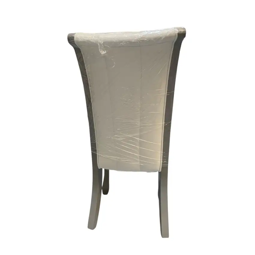 Cadeira estofada branca com design clássico, confortável e ideal para ambientes elegantes.