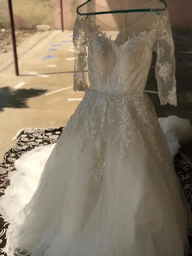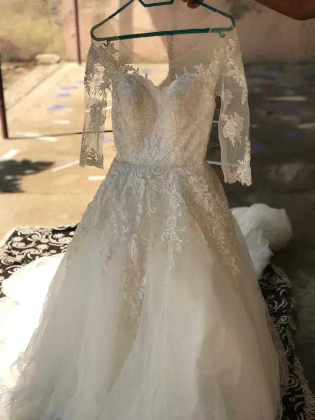 Este vestido de noiva branco faz parte de um lote de fardo, sendo uma excelente escolha para quem busca elegância a um preço acessível.