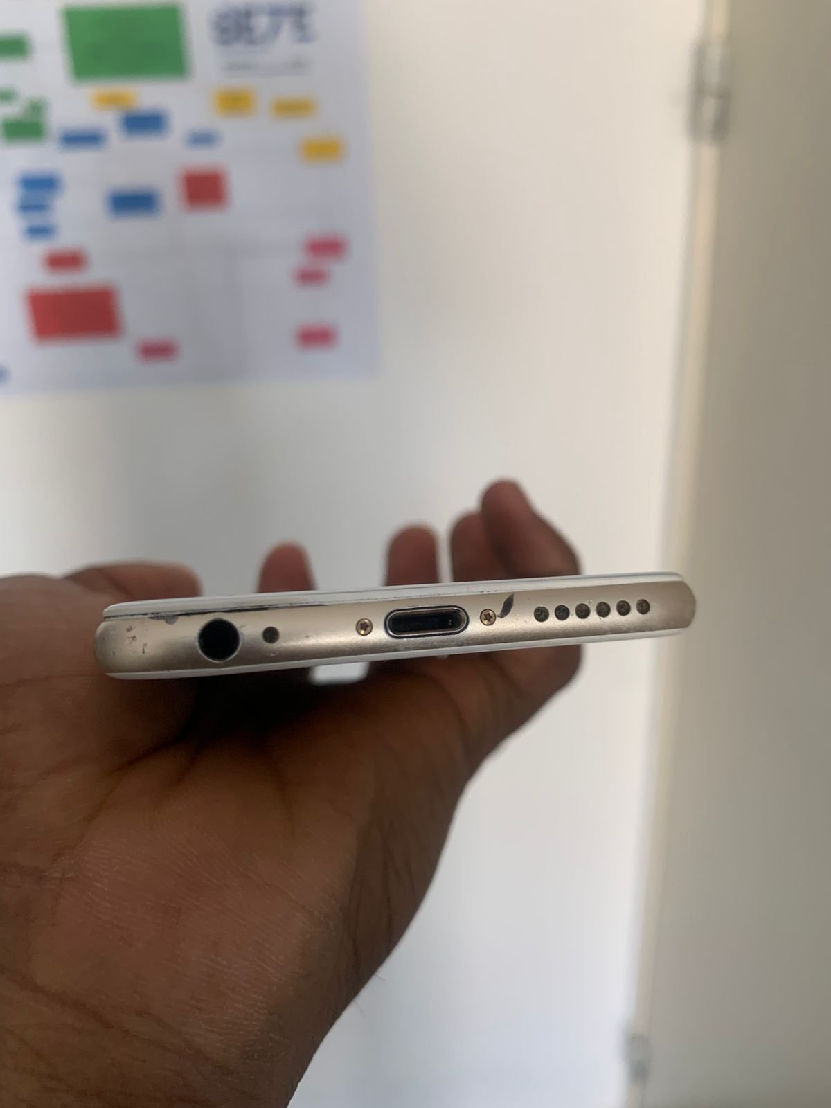 iPhone 6s com 64GB de armazenamento, em perfeito funcionamento. Equipamento usado, com pequeno dano estético na lateral como mostra a imagem, que não afeta o desempenho ou usabilidade do aparelho. Ideal para quem busca um smartphone confiável e acessível.