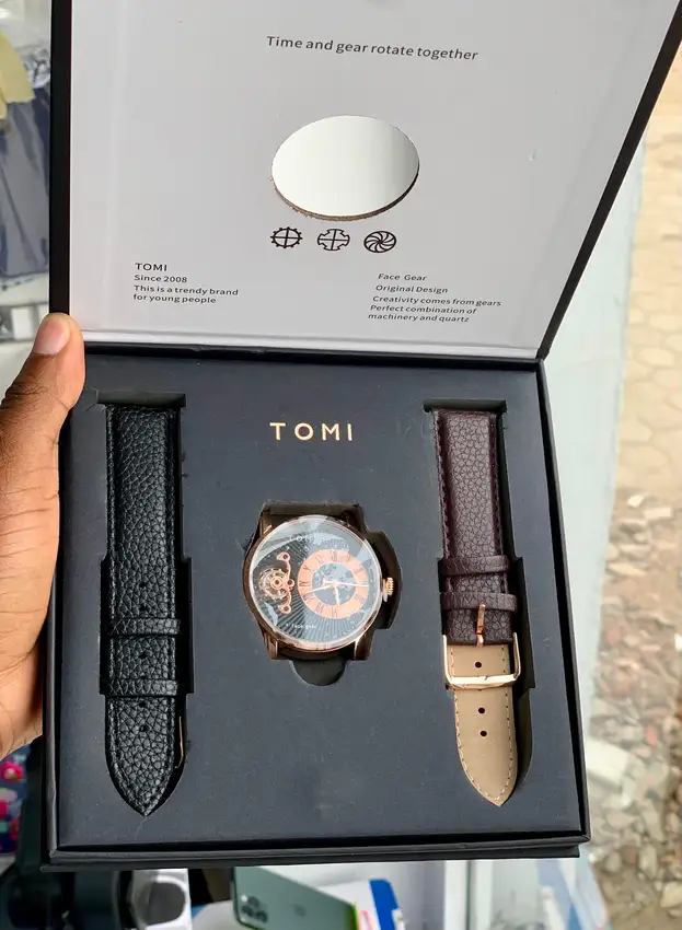 Transforme seu estilo em segundos com o relógio TOMI, que acompanha duas pulseiras intercambiáveis: duas de couro clássico moderna. Ideal para quem busca praticidade sem abrir mão da sofisticação.