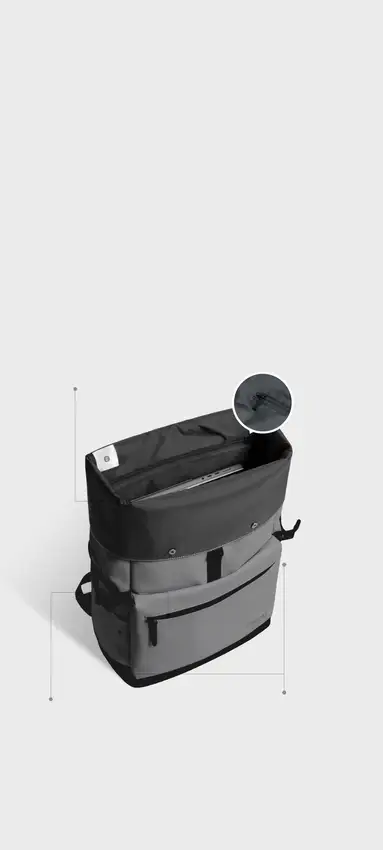 Design roll-top ajustável para maior capacidade.